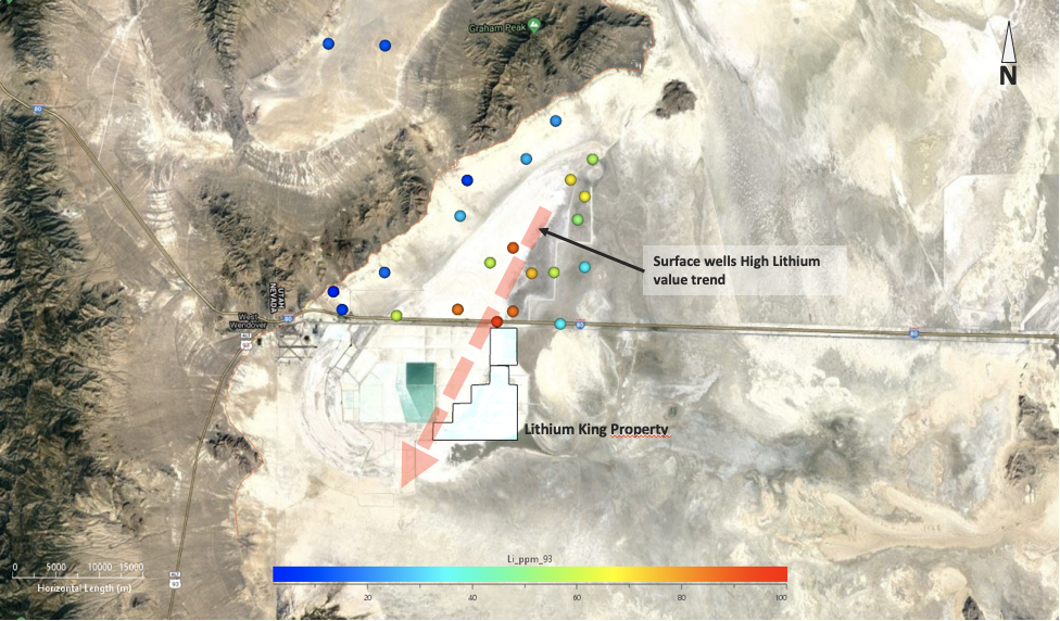 The Property sits along the Southern extension of an interpreted high Lithium value trend from the surface well samples*.